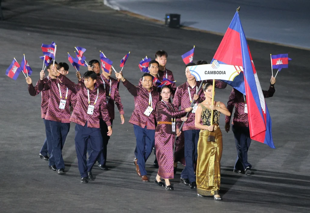 Delegasi Kamboja menghadiri upacara pembukaan SEA Games ke-33 pada malam 9 Desember. Foto: SN