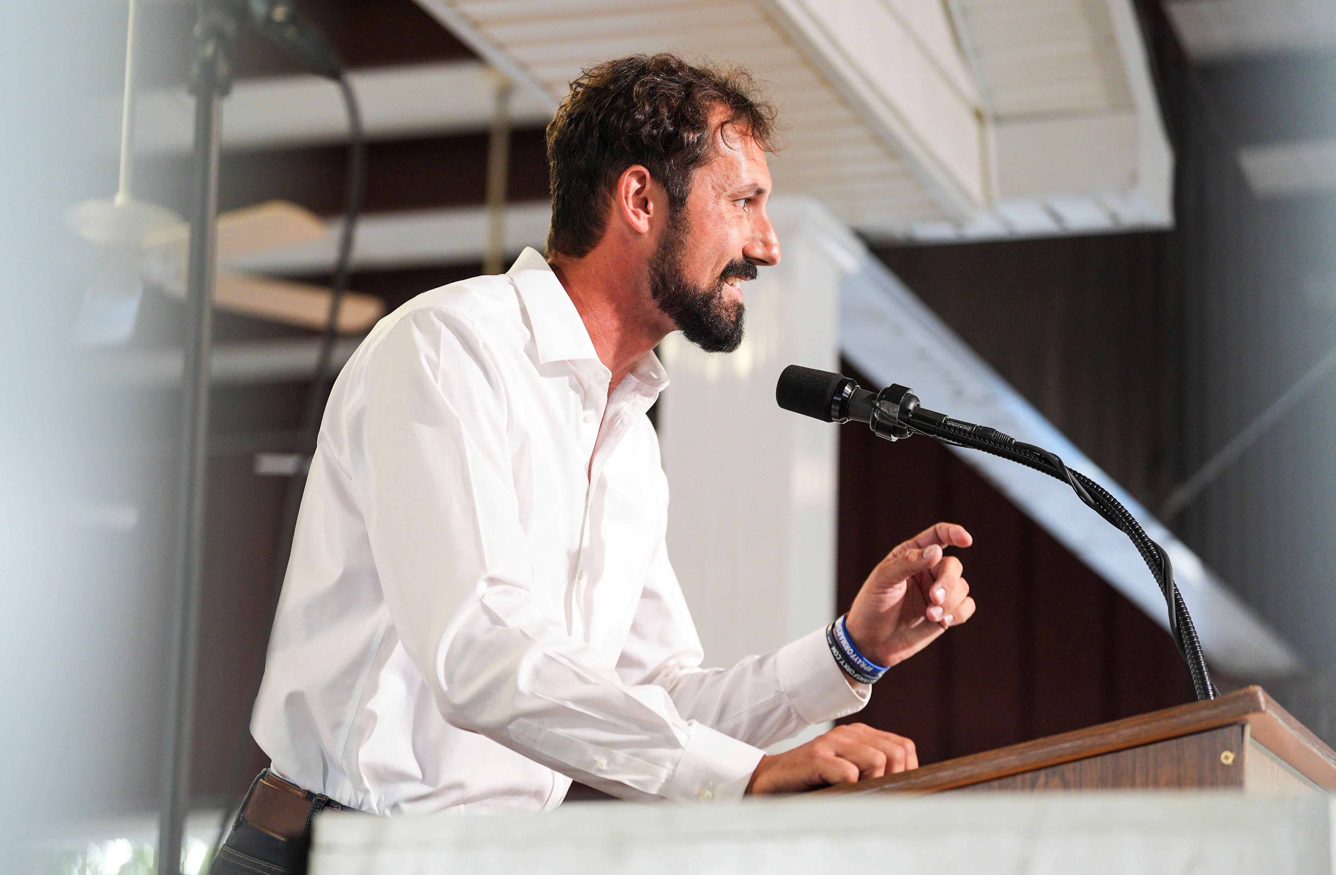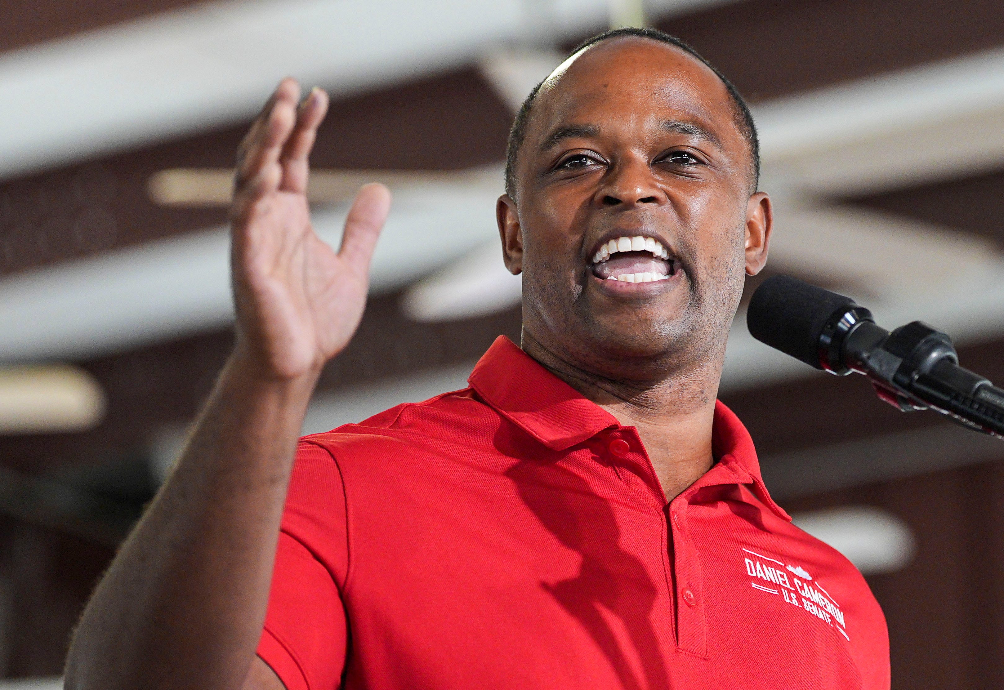 Sementara kandidat Senator AS Cameron menyatakan di awal pidatinya bahwa dia akan mendukung Agenda Amerika Pertama Presiden Donald Trump, dia juga memanfaatkan waktunya untuk mengkritik lawan-lawannya Andy Barr dan Nate Morris.