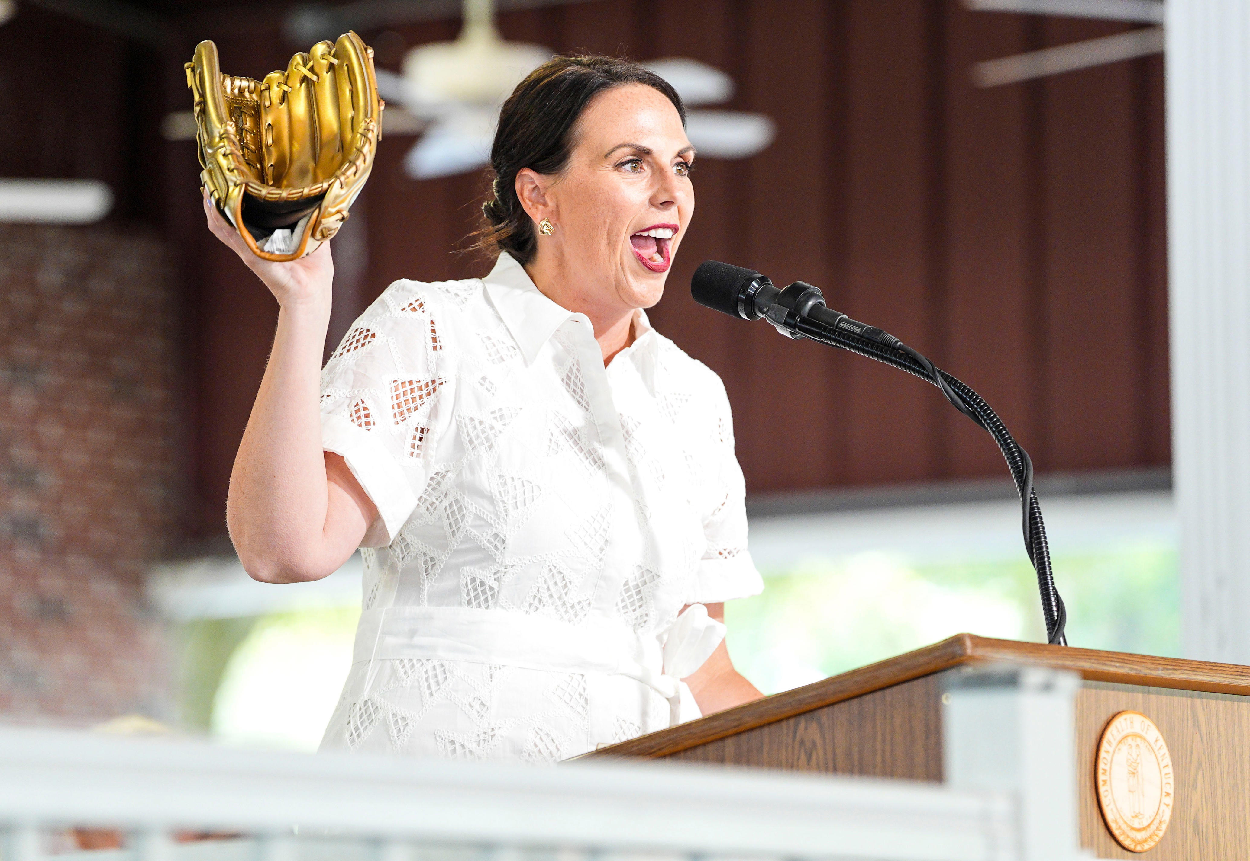 Watts, presiden dan CEO Kamar Dagang Kentucky, adalah pembawa acara perempuan pertama dalam sejarah Fancy Farm.